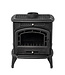 Een klassieke gietijzeren kachel. Een kachel die indruk maakt, niet alleen zijn rijke versiering zijn een echte blikvanger, maar de prestaties. Een vermogen van 9,3 kw komt uit deze betrouwbare en degelijke kachel. Niet voorzien van vuurvaste stenen, zoals de meeste kachels, maar echt authentiek gietijzer. De rookgassen kunnen aan de bovenzijde óf achterzijde worden afgevoerd.